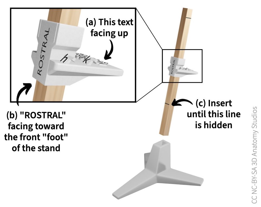 - orient the rod so that the "3D ANATOMY STUDIOS" text on the shelf is facing up,